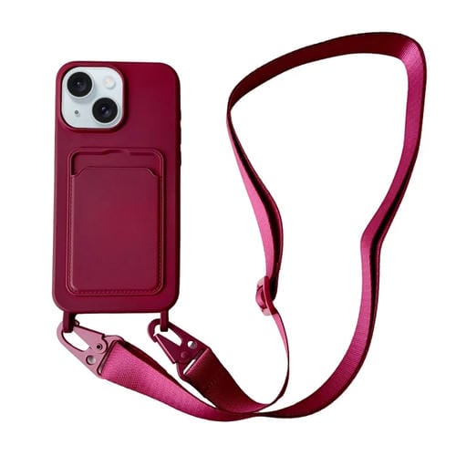 Funda para Teléfono iPhone 14 Silicona Líquida Ranura para Tarjeta y Cordón (Rojo Vino)