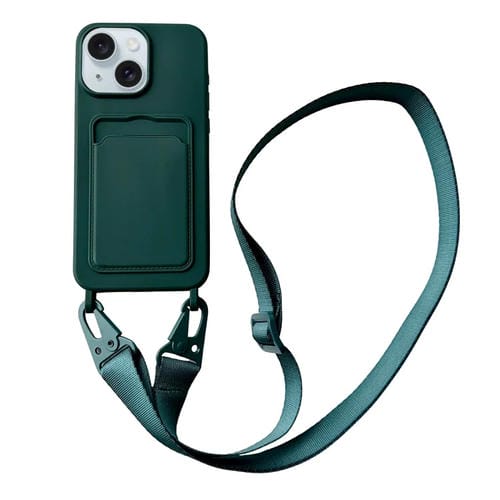 Funda para Teléfono iPhone 14 Silicona Líquida Ranura para Tarjeta y Cordón (Verde Oscuro)
