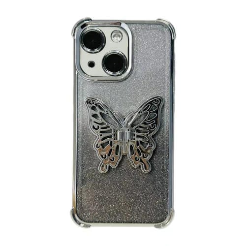 Funda para Teléfono TPU para iPhone 14 a Prueba de Golpes con Mariposa 3D y Brillo Galvanizado (Plata Degradada)
