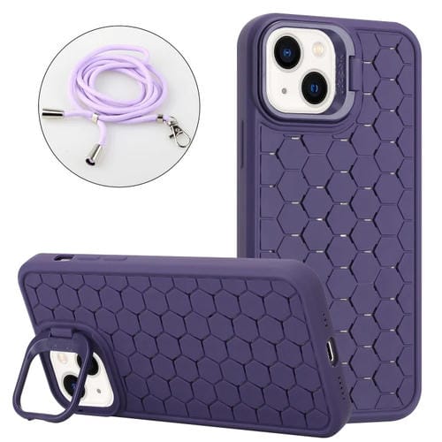 Funda para Teléfono TPU para iPhone 14 con Soporte Radiante de Panal y Cordón (Púrpura)