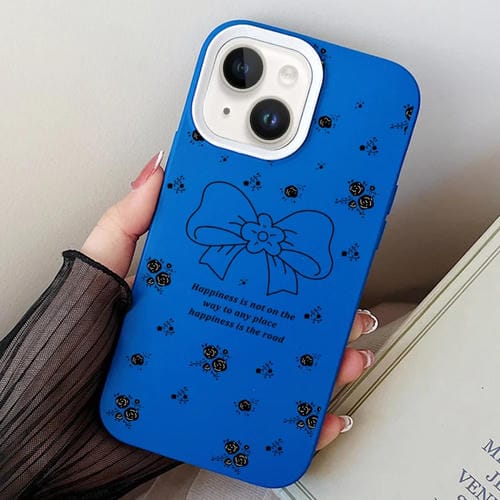 For iPhone 14 Floral Bowknot PC TPU Hybrid Phone Case (Blue)