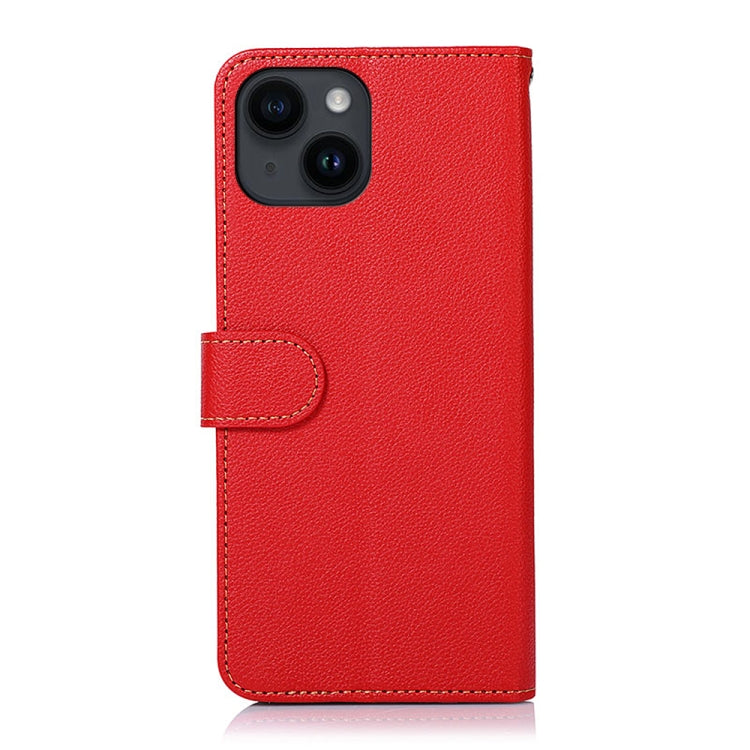 Funda para iPhone 14 Khazneh Litchi Texture Leather Rfid Phone Case (Rojo)