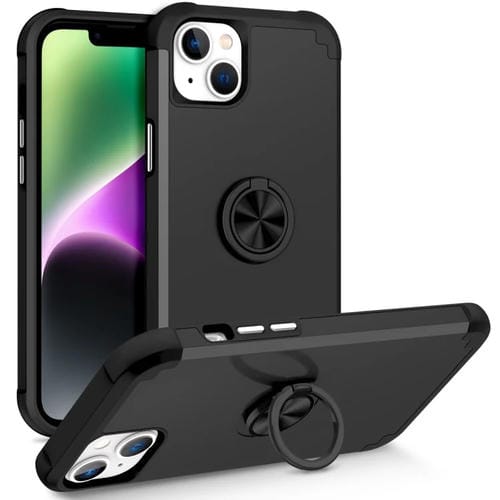 Funda magnética para teléfono iPhone 14 L2 con soporte de anillo giratorio (Negro)