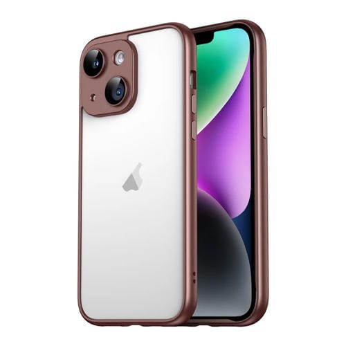 Funda para iPhone 14 Macaron PC Marco de Borde Puro con Película de Vidrio para Lentes (Marrón)