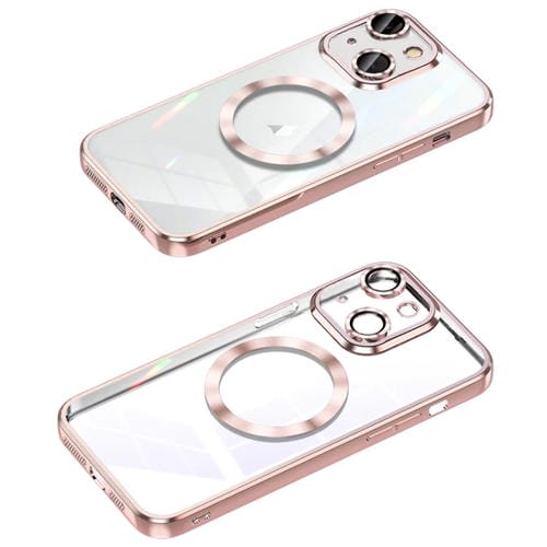 Estuche para teléfono iPhone 14 Magsafe Cd Texture Marco de Lente de Metal Cobertura Total (Rosa)