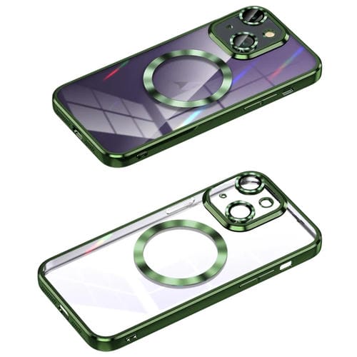 Estuche para teléfono iPhone 14 Magsafe Cd Texture Marco de Lente de Metal Cobertura Total (Verde)