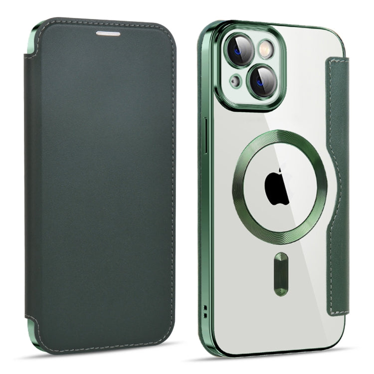 For iPhone 14 MagSafe Magnetic RFID Anti-Theft Leather Phone Case (Dark Green)
