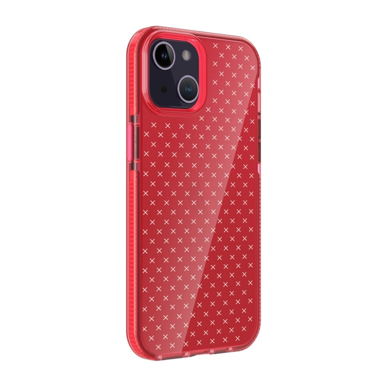 Funda de Teléfono TPU iPhone 14 Patrón de Cuadrícula Transparente (Rojo)