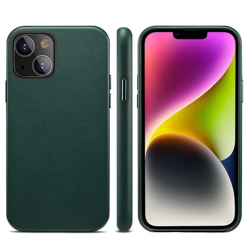 Funda para iPhone 14 Plus Cordero Grano PU Contraportada Caja del Teléfono (Verde Oscuro)