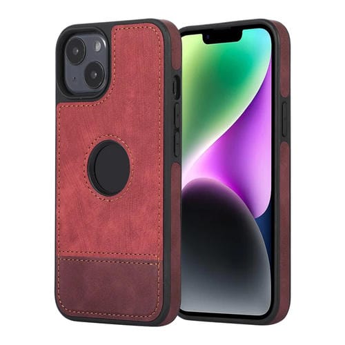 Funda para iPhone 14 Plus Empalme Costura Caja de Teléfono de PU con Recorte (Rojo)