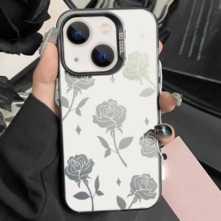 For iPhone 14 Plus Hybrid PC Silver Paint TPU Phone Case (Hollow Rose Black)
