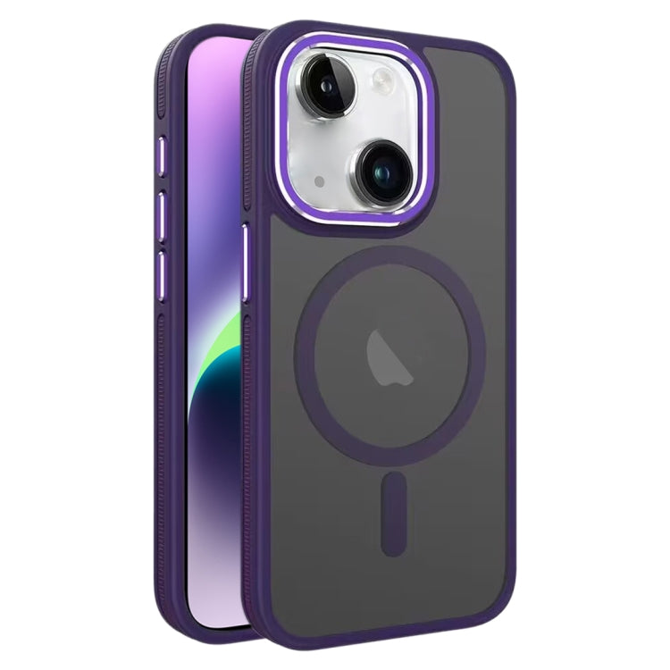 Estuche Magnético para Teléfono iPhone 14 Plus Magsafe Esmerilado Dos Colores (Púrpura)