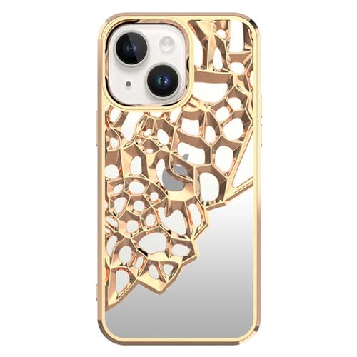Estuche para Teléfono TPU Galvanizado iPhone 14 Plus Disipación de Calor Hueco Estilo Espejo (Dorado)