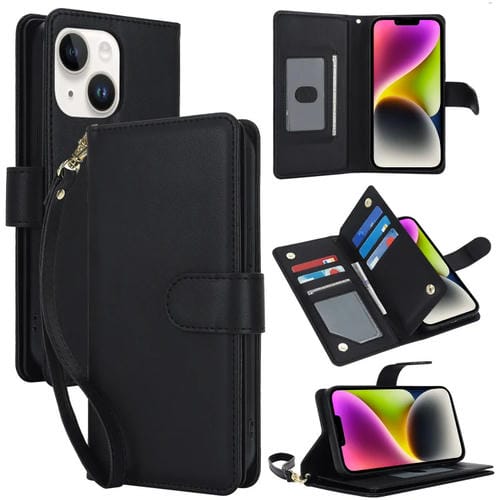 Pour iPhone 14 Plus Étui de téléphone en cuir RFID avec portefeuille multi-cartes (noir)