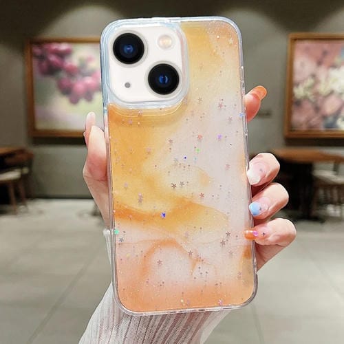Funda para Teléfono TPU iPhone 14 Plus con Purpurina Manchada de Tinta (Amarillo)