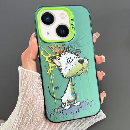 Funda para Teléfono iPhone 14 Plus Imd Animal Graffiti TPU + PC Doble Cara (Perro Verde Blanco)