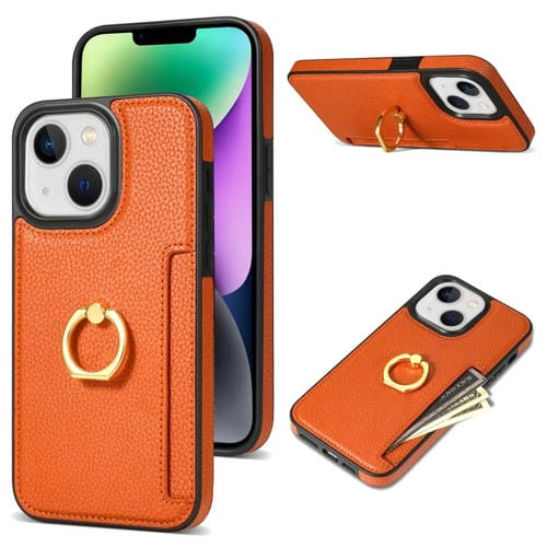 Funda Trasera para iPhone 14 Plus Ring Card Litchi Cuero (Naranja)