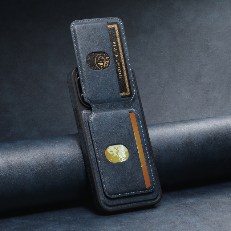 Funda para Teléfono Suteni M1 Oil Wax Magsafe para iPhone 14 Plus con Bolsa para Tarjeta Horizontal (Azul)
