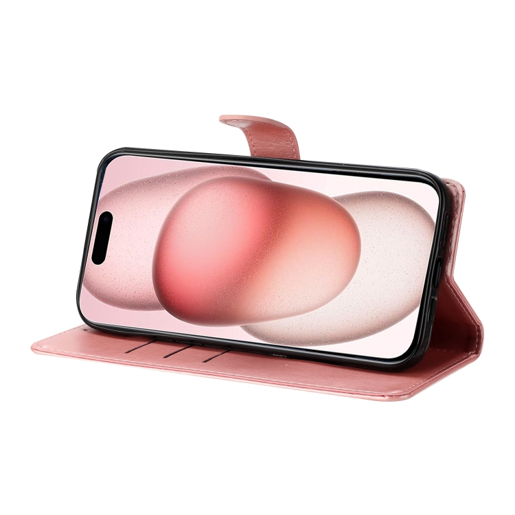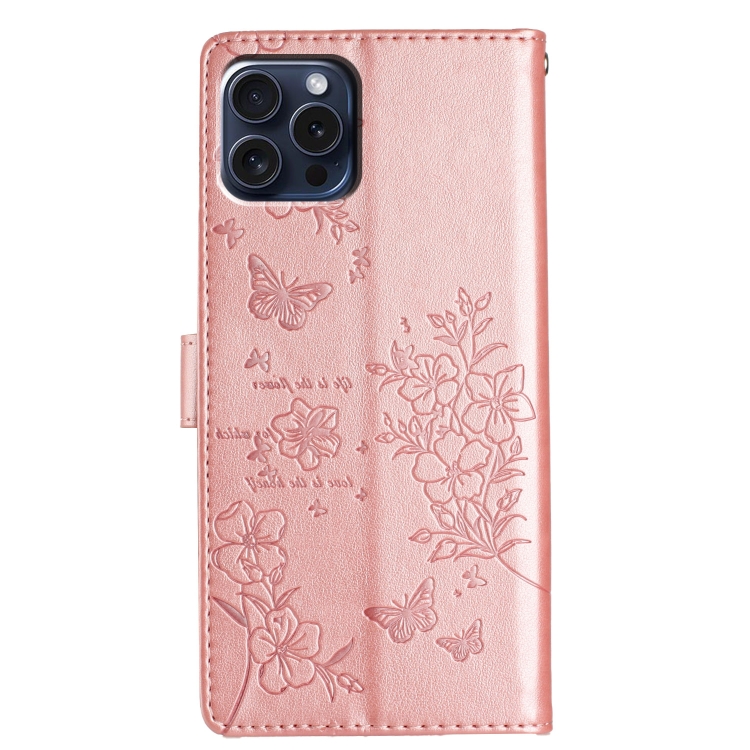 Funda de Cuero iPhone 14 Pro Butterfly Love Flower En Relieve (Oro Rosa)