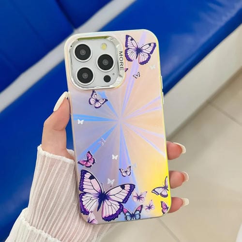 Estuche para Teléfono iPhone 14 Pro Mariposa Láser Galvanizada (Morado)