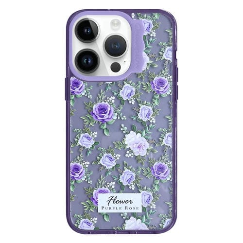 Pour iPhone 14 Pro Étui de téléphone à motif créatif de cercle de vagues colorées (fleur violette)