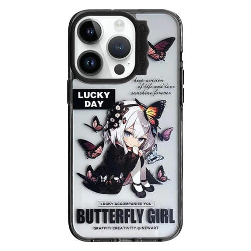 Pour iPhone 14 Pro Étui de téléphone à motif créatif de cercle de vagues colorées (papillon de fleuriste)