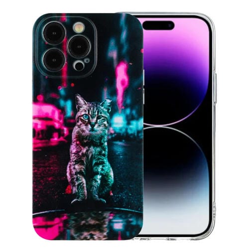 Caja de Teléfono TPU para iPhone 14 Pro Max con Patrón de Pintura Colorida (Gato Semáforo)