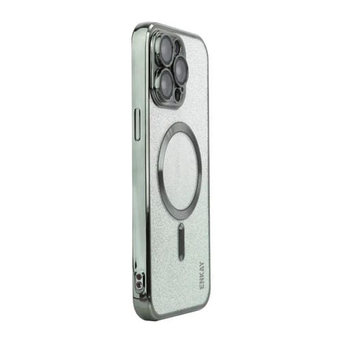 Estuche para Teléfono Enkay Hat-Prince iPhone 14 Pro Max a Prueba de Golpes con Brillo Magnético y Película para Lentes (Verde)