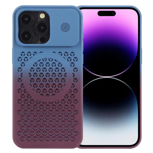 Estuche Magnético para Teléfono iPhone 14 Pro Max Aromaterapia Enfriamiento Forma de Panal (Azul Rojo)