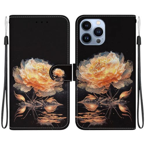 Estuche para Teléfono iPhone 14 Pro Max Cuero Dibujo Coloreado Textura Cristal (Peonía Dorada)