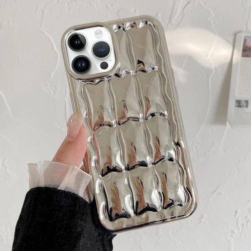 Estuche para Teléfono TPU iPhone 14 Pro Max Textura de Rejilla 3D (Plateado)