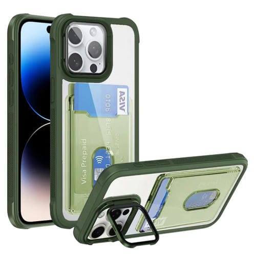 For iPhone 14 Pro Max Acrylic Hybrid TPU Phone Case with Card Holder (Green)