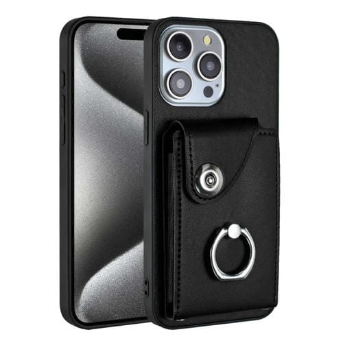 Funda para Teléfono iPhone 14 Pro Max con Soporte para Anillo y Bolsa para Tarjeta (Negro)