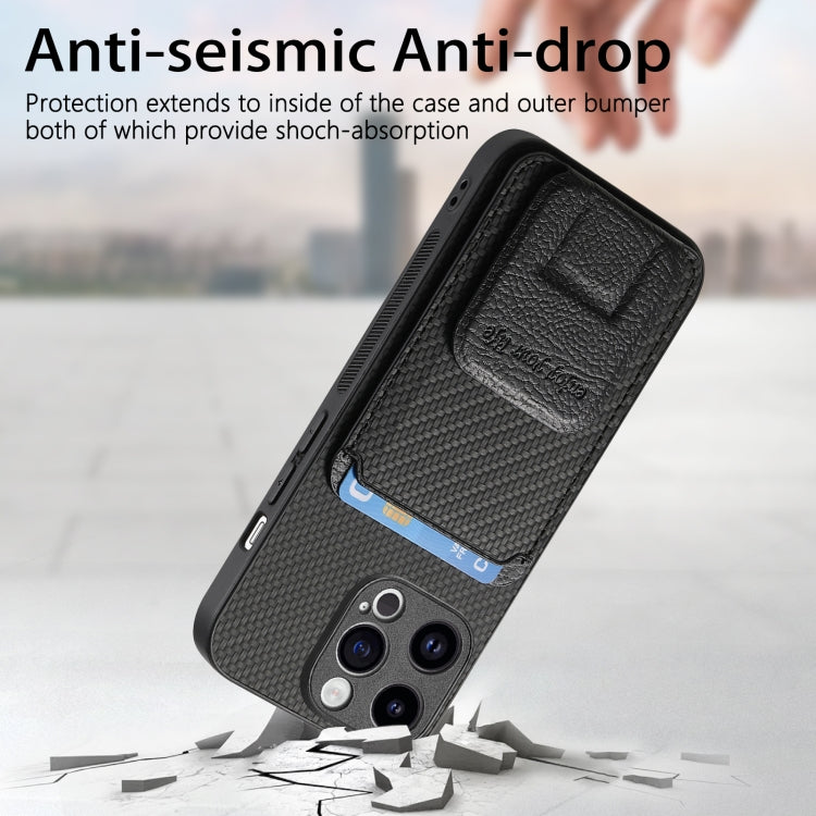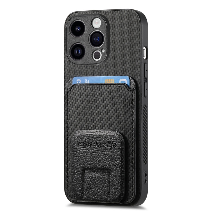 Funda para Teléfono iPhone 14 Pro Max con Soporte Plegable y Bolsa para Tarjetas de Fibra de Carbono (Negro)