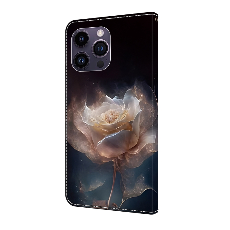Funda para Teléfono iPhone 14 Pro Max Cuero Pintado con Cristales (Peonía)
