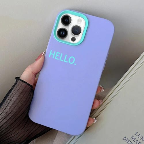 Estuche híbrido para iPhone 14 Pro Max Hello Word PC y TPU (Púrpura)