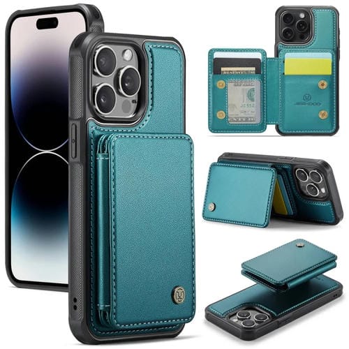Estuche para Teléfono Jeehood J05 para iPhone 14 Pro Max Cuero Rfid Estilo Magnético Empresarial (Azul Verde)