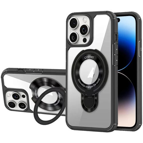 Caja de Teléfono Híbrida Acrílica de TPU con Soporte para iPhone 14 Pro Max Magsafe (Negro)