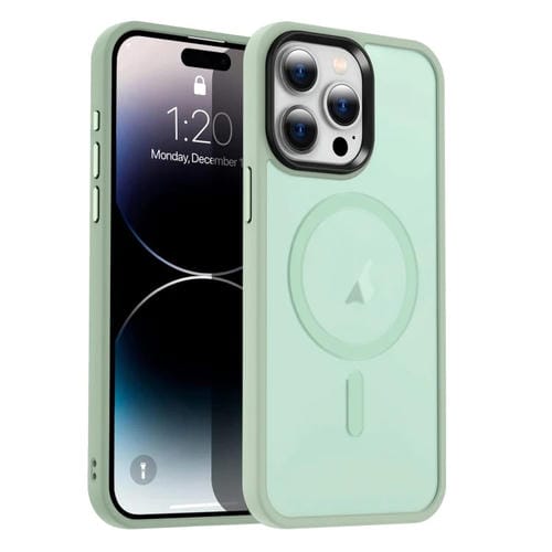 Pour iPhone 14 Pro Max MagSafe Étui de téléphone à sensation de peau magnétique givré (vert clair)