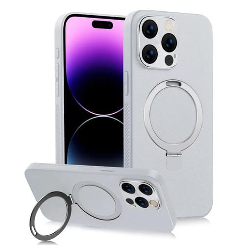 Holder para iPhone 14 Pro Max Magsafe + Funda de Cuero para Teléfono (Blanco)