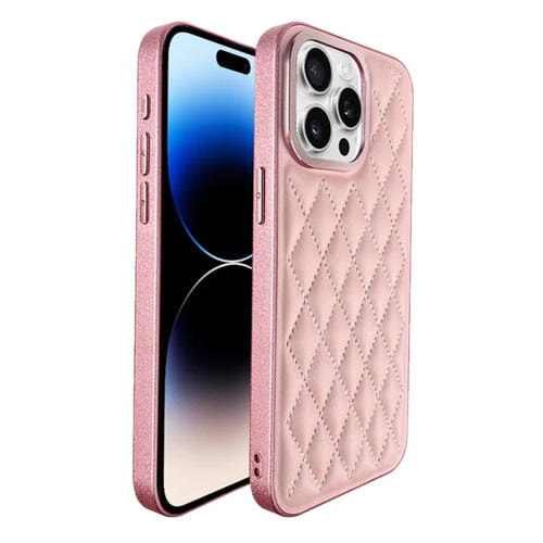 Pour iPhone 14 Pro Max Plaid Series 9D Étui de téléphone galvanisé (Rose)