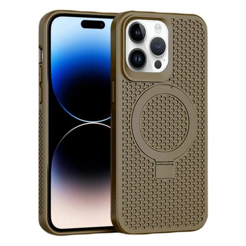 Funda para iPhone 14 Pro Max Skin Feel PC + TPU Magnética con Enfriamiento y Soporte (Marrón)