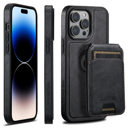 Funda para Teléfono Suteni M2 para iPhone 14 Pro Max con Magsafe y Bolsa para Tarjeta Horizontal (Negro)