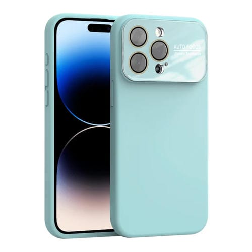Película de Lente Acrílica y Funda Silicona Líquida para iPhone 14 Pro Cobertura Total (Azul Cielo)