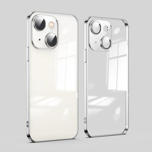 Protector de Lente Vidrio para iPhone 14 Caja de Teléfono Galvanoplastia (Plata)