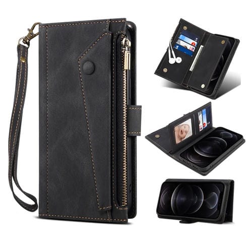 Funda para iPhone 14 Retro Frosted Rfid Flip de Cuero para Teléfono (Negro)