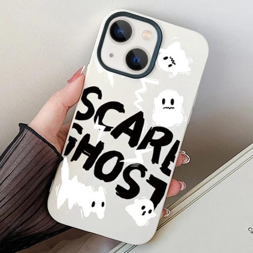 Estuche híbrido para teléfono iPhone 14 Scared Ghost PC y TPU (Blanco)