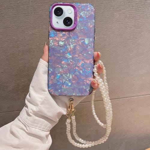 Caja de Teléfono para iPhone 14 Shell Texture Crossbody Pearl Chain TPU Acrílico Híbrido (Púrpura)
