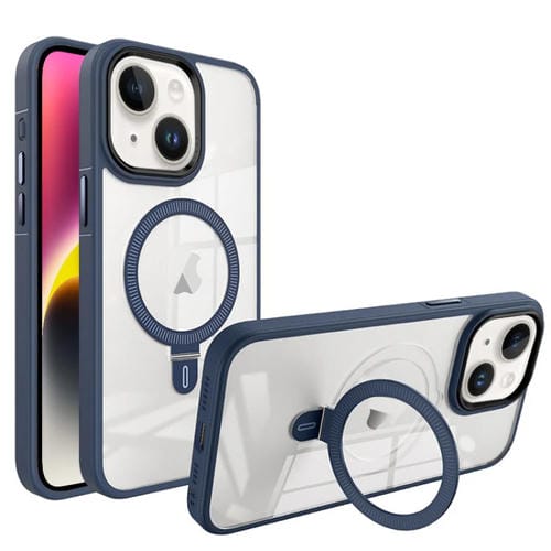 Funda para teléfono iPhone 14 Shield Armor Magsafe Holder (Azul Real)