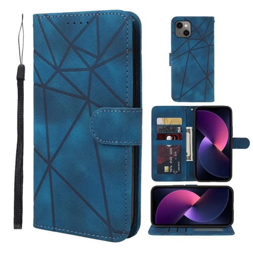 Funda para teléfono iPhone 14 Skin Feel cuero líneas geométricas (Azul)